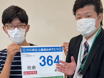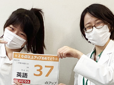 メビウスに入塾して、入学するまでは、分からなかったテスト前の勉強法をアドバイスしていただき、アドバイスの内容であった「繰り返しやってみよう!!」を実行してみたら、入塾する前より70点近く点数UPすることができました。入塾する前は、塾に馴染めるか不安でしたが、直ぐに馴染むことができました。