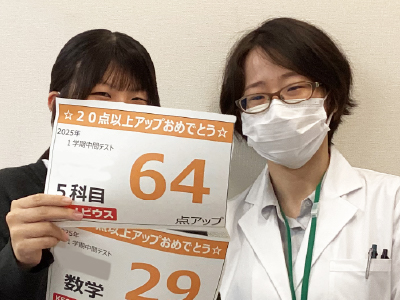 入試前になるとテスト対策もしっかりしてくれ、私自信も勉強に積極的に取り組むようになりました。そのおかげで家での学習時間も伸び、入試では満足な点を取れて志望校に合格することができました。