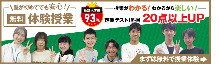 無料体験では個別指導の通常授業を90分間お試しいただけます。また、春休み、夏休み、冬休みの講習では「4日間~5日間の無料体験」授業を受けていただくことが可能です。メビウスの無料体験についてはこちらのページをご覧ください。