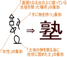きの部屋などに設けられた教育する場所」、「じゅく」を意味する「塾」という漢字が成り
