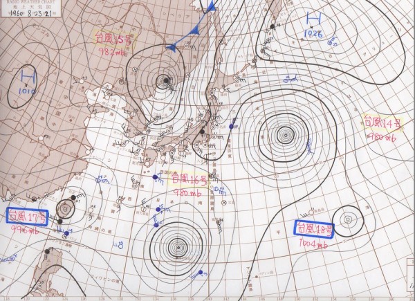 ありましたが)なのですが、1960年には5つの台風が日本付近を囲むように並んだことがあるそうです。その