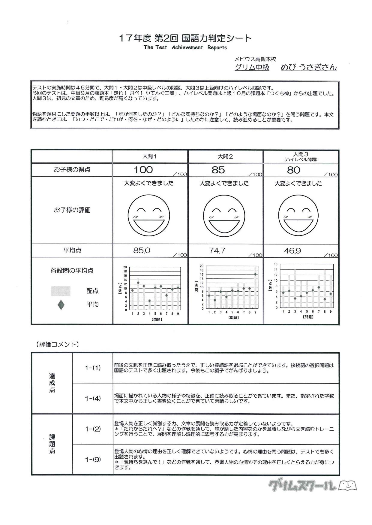メビウスで開講しているグリムスクールでは、年に2回、国語力判定テストを実施しています。