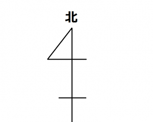 る方位記号の矢印の先端方向が北にあたります。