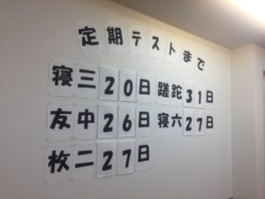 香里園校ではこのように、教室内に次の定期テストまでのカウントダウンを掲示しています。