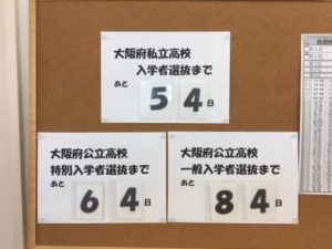 メビウス香里園校では、毎年このように入試本番までのカウントダウンを教室内に掲示しています!