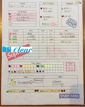 スタディプランナーは一日の勉強の振り返り&時間の使い方チェックを行うことので