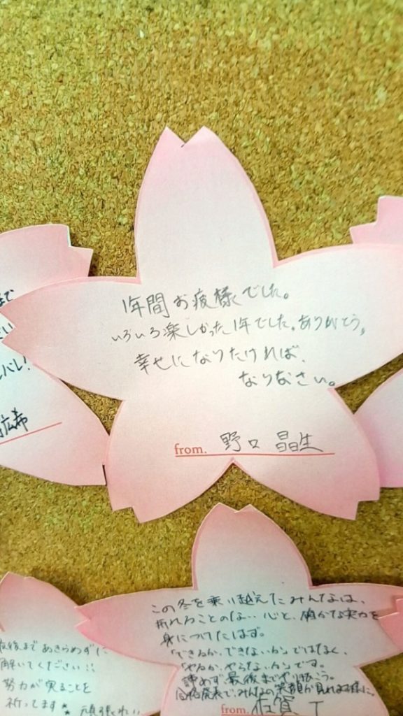 一足早いですが、石山本校の受験生のみなさん、1年間本当にお疲れ様でした。