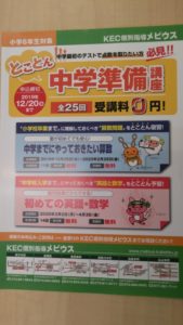 メビウスでは小6生を対象に「とことん中学準備講座」というものがあります。