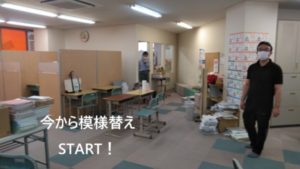 ブースの配置換えから行いKEC個別指導塾メビウス香里園校に引き続き広い広いフリースペースが出来ました!