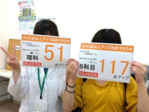 ↓↓5科目合計117点UP達成、理科51点UP達成の寝屋川第三中学校3年生の塾生です!